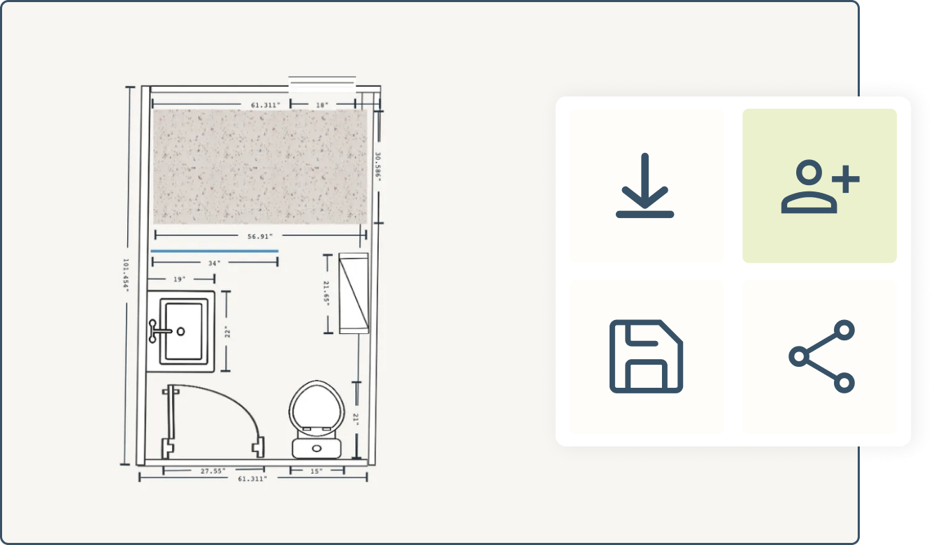 Download your floor plans and elevations in a variety of formats to easily print or share with others, like a client, spouse, friend, or contractor.