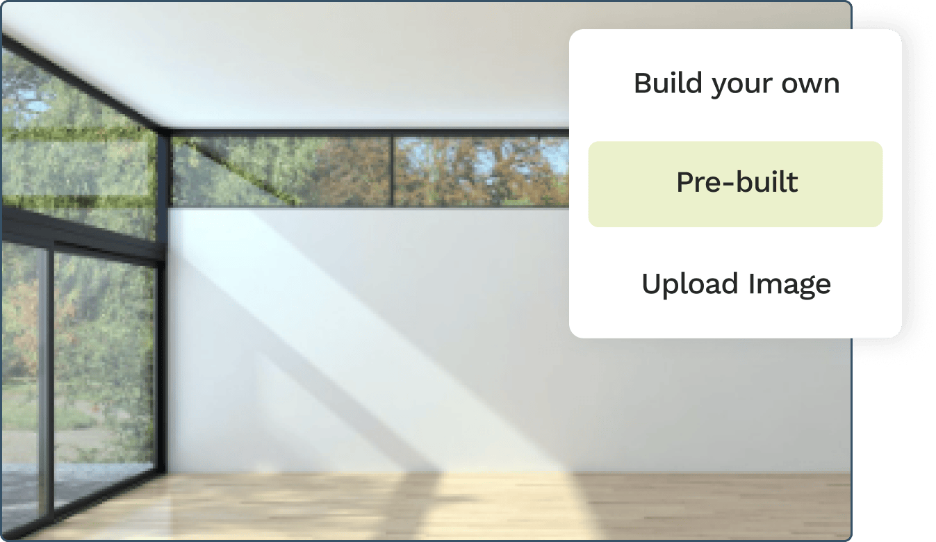 Create and customize your room canvas. Choose from one of our pre-built templates or upload an image of your own space to get started. Add in windows, doors, and other room elements to complete the look.