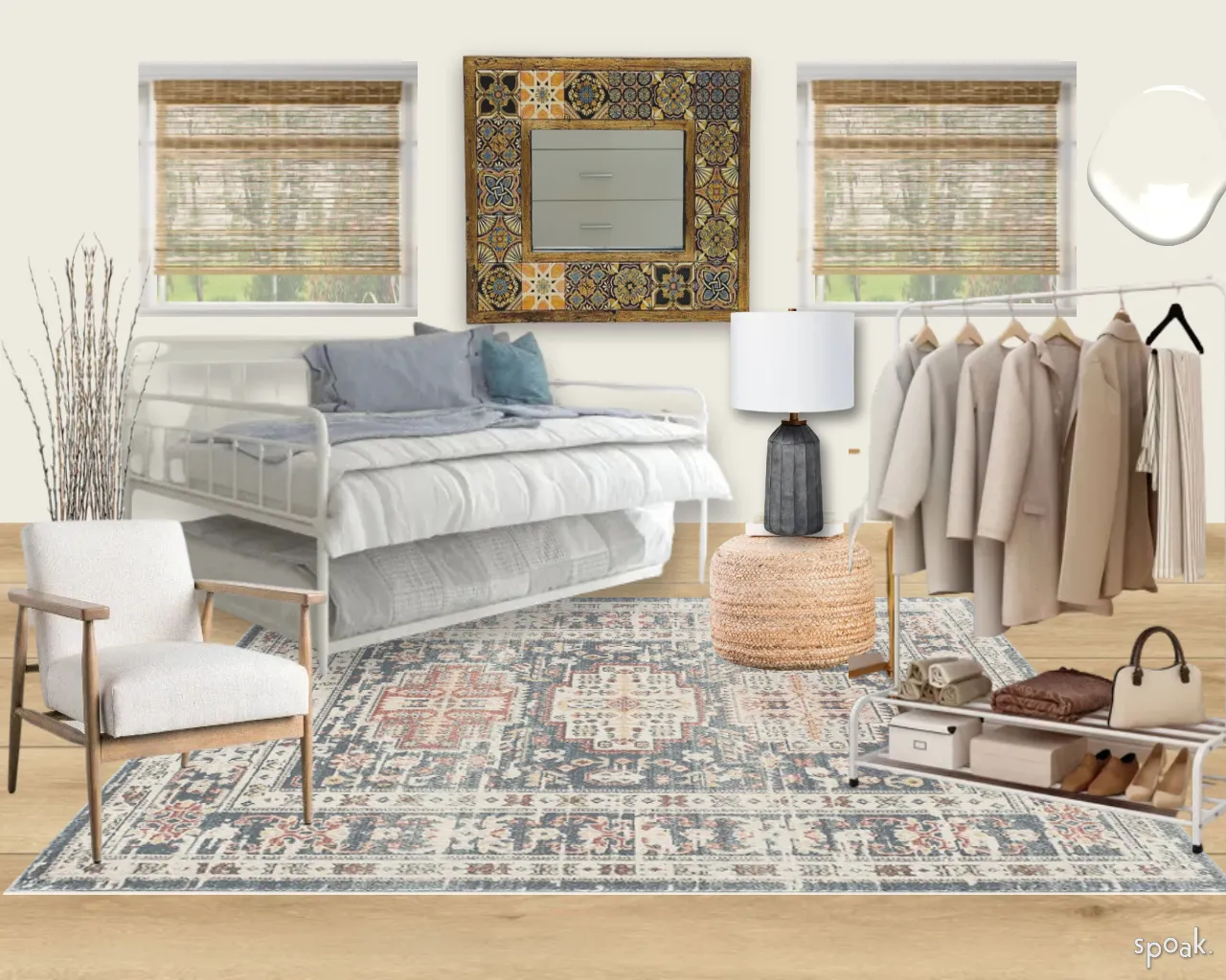 It may be tempting to distract from a corner bed because it seems against normal design rules, but if it has to go in the corner, “own it.” Use the room layout tool in Spoak’s Design Suite to experiment with plans that work in your space.