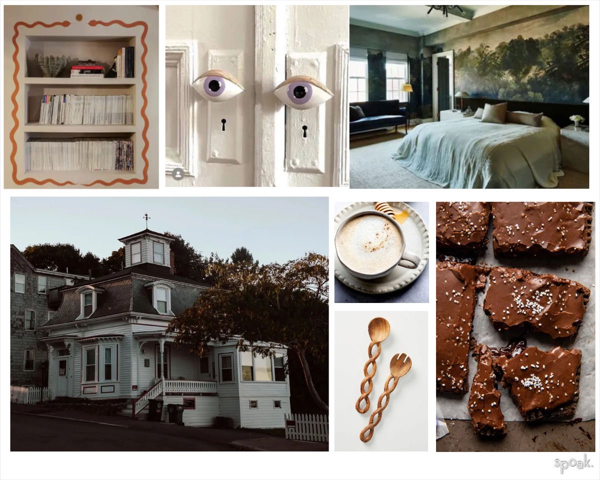The best designs bring all of your senses to life, and the same can be said about this mood board designed by Shellie Kemp. We can almost smell the homemade brownies and taste the warm chai latte, and the eye-ball door knobs and wavy bookshelf detail add the perfect amount of magic just in time for fall.