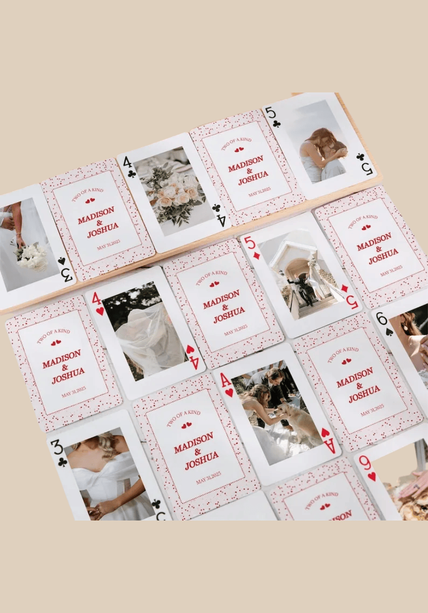 A custom photo deck that feels playful and deeply personal. Perfect for coffee tables, game nights, or gifting someone who loves sentimental details woven into everyday moments.